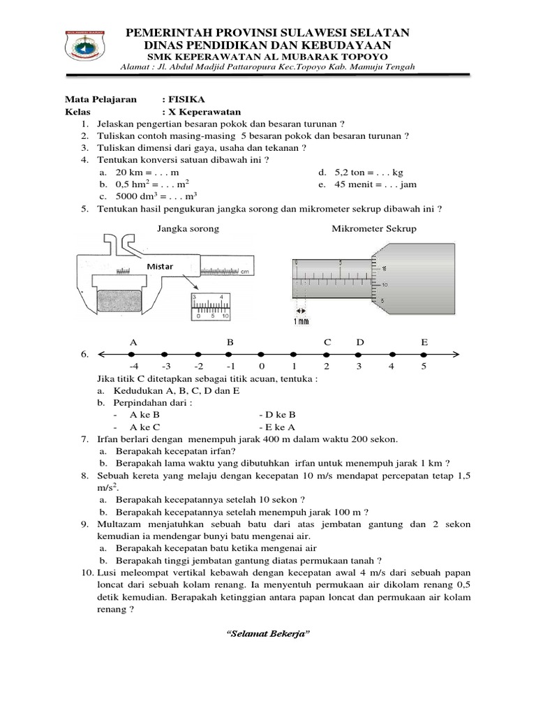 Soal Soal Fisika Kelas 10 Semester Ganjil Lengkap Senyum