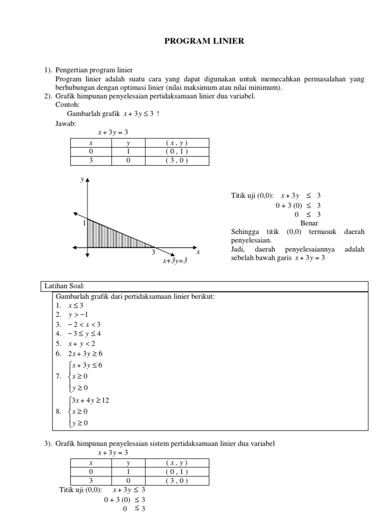 Teknik pindah ruas termasuk teknik paling mudah ketimbang. Menentukan himpunan penyelesaian sistem pertidaksamaan, menyusun sistem pertidaksamaan Untuk menentukan himpunan penyelesaian pertidaksamaan linear, maka metode grafik merupakan salah satu metode yang harus kita pahami. Demikianlah pembahasan mengenai contoh soal pertidaksamaan linear dua variabel, semoga dengan adanya artikel ini dapat membantu anda dan para pembaca lainnya dalam.