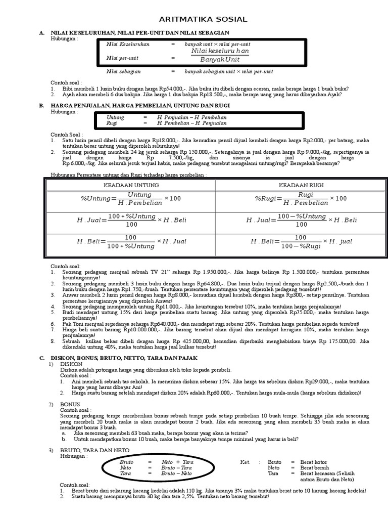 Dengan demikian dapat disimpulkan sebagai berikut. Dapatkan contoh soal mengenai aritmatika sosial Untuk Tingkat SMP dilengkapi dengan pembahasannya disini. Berat barang beserta kemasannya disebut berat kotor atau bruto, sedangkan berat barangnya saja disebut berat bersih atau neto.