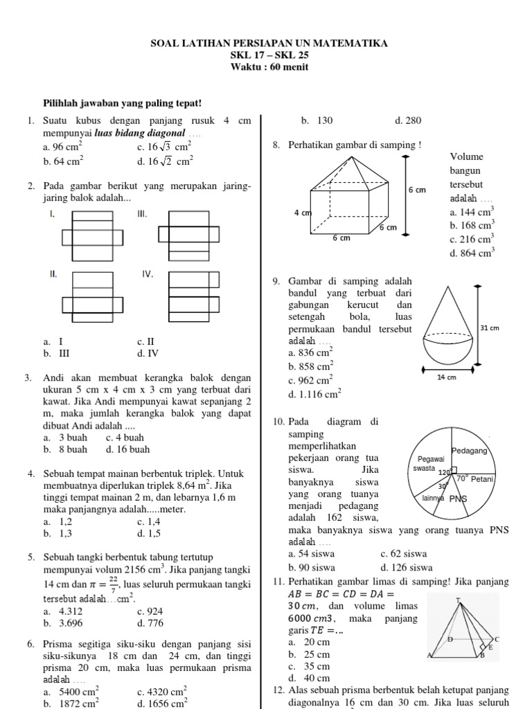Contoh Soal Matematika Ujian Nasional SMA/SMK Dan Kunci Penyelesaian - Pada kesempatan kali ini saya akan memberikan beberapa contoh latihan soal matematika untuk sma dan smk yang bisa kalian coba untuk belajar dirumah.